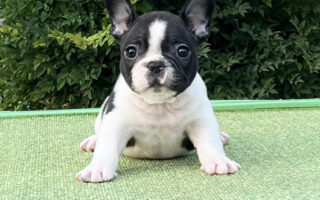 可愛いお顔でバランス良く牛柄模様が入ったパイド男の子です。お鼻やお口周りは成長につれ黒く綺麗に整ってきます。子犬がわかりやすいように写真をアップにしていますので大きく見えるかもしれませんが、子犬の動画をみていただくと実際のサイズ感や写真以上の可愛さが伝わりますので、もしこの子が気になっていただけましたらまずは動画希望をお待ちしています。